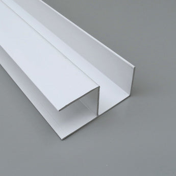 The 35mm white PVC Corner Profile Trim is installed vertically and allows 35mm hoarding panels to slot into the channels in the profile to create a 90 degree corner. It creates a smooth and robust corner with no rough edges. Suitable for indoor and outdoor hoarding installations.