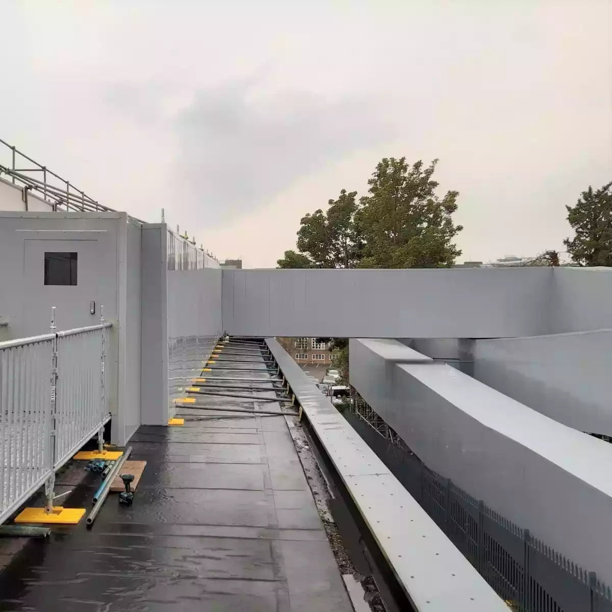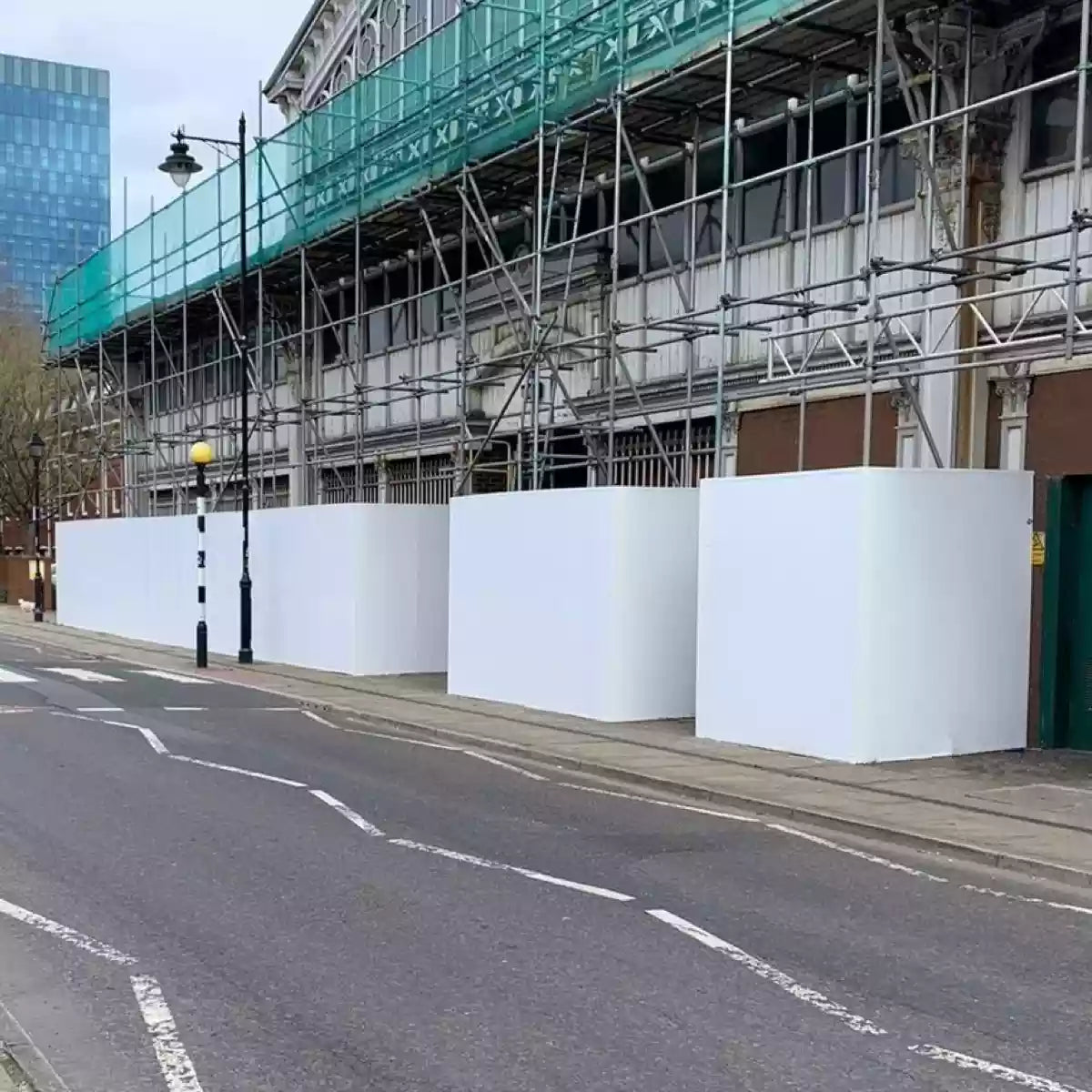 Panels can incorporate 90-degree corners for recesses and digi-lock personnel doors. The interlocking PVC panels create a smooth, maintenance-free hoarding which protects pedestrians and trade teams throughout the project.
