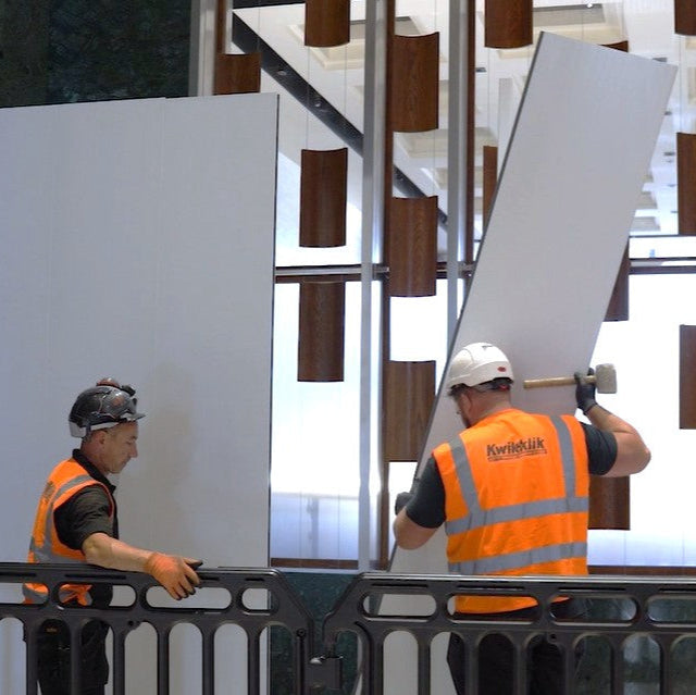 Our simple, modular 35mm Hoarding Panel is part of our best selling indoor Freestanding Hoarding System and our Floor to Ceiling System.